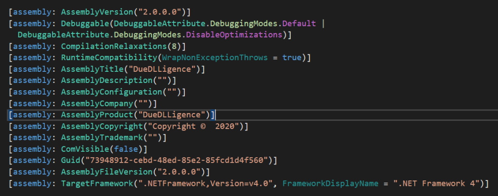Now, let’s take a look at DismCore.dll in DnSpy. Interesting that attackers didn’t even change assembly info before building the code