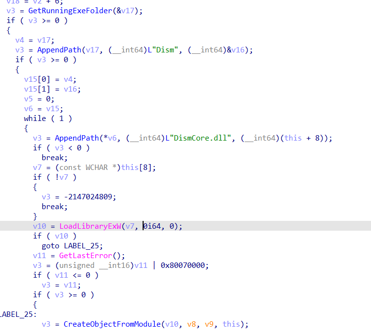 as you see the disassembled code above is one of the libraries that Dism.exe