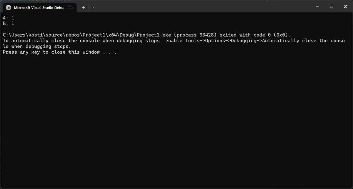 #include "state.hpp" void A(); void B(); int main() { A(); // prints A: 1 B(); // prints B: 2 (same Counter instance) }