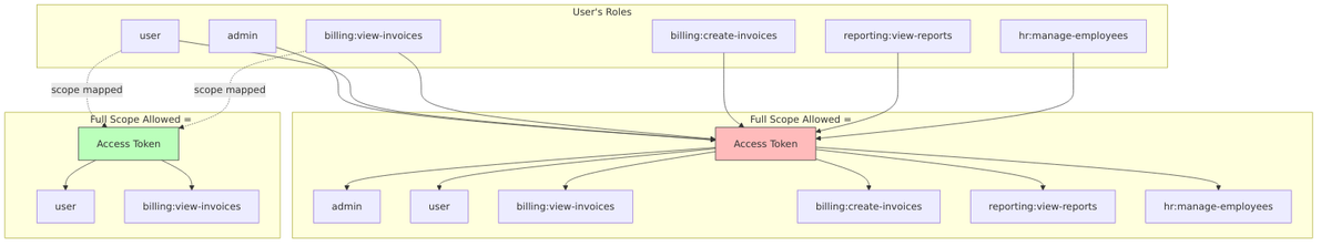 When Full Scope Allowed is disabled, roles in tokens are determined by scope mappings.