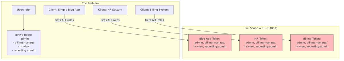 - Over-privileged tokens: Applications receive more permissions than they need