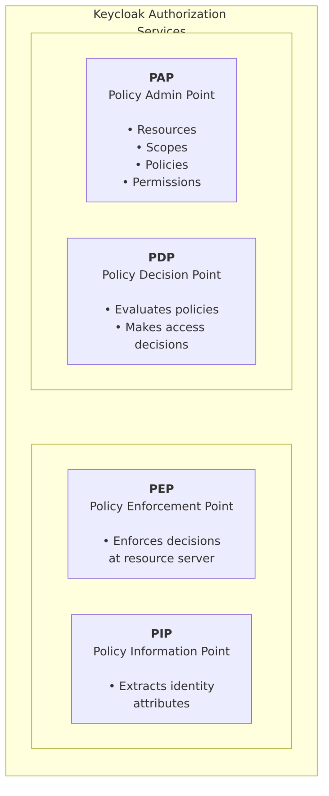 - Authorization Server – Manages permissions and policies (Keycloak)